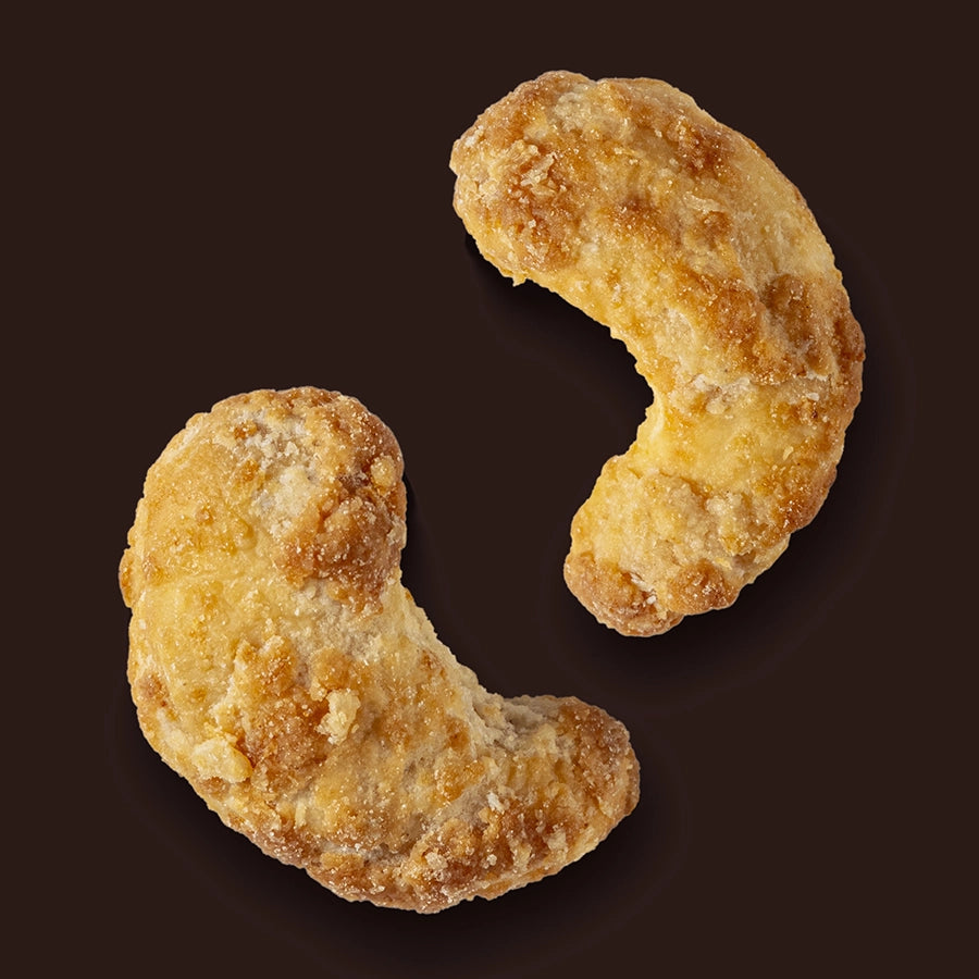 Realizzati con anacardi di alta qualità, cocco grattugiato e zucchero di canna, senza conservanti, coloranti o aromi artificiali. Una bontà semplice e genuina, creata con pochi ingredienti ma dal risultato sorprendente.