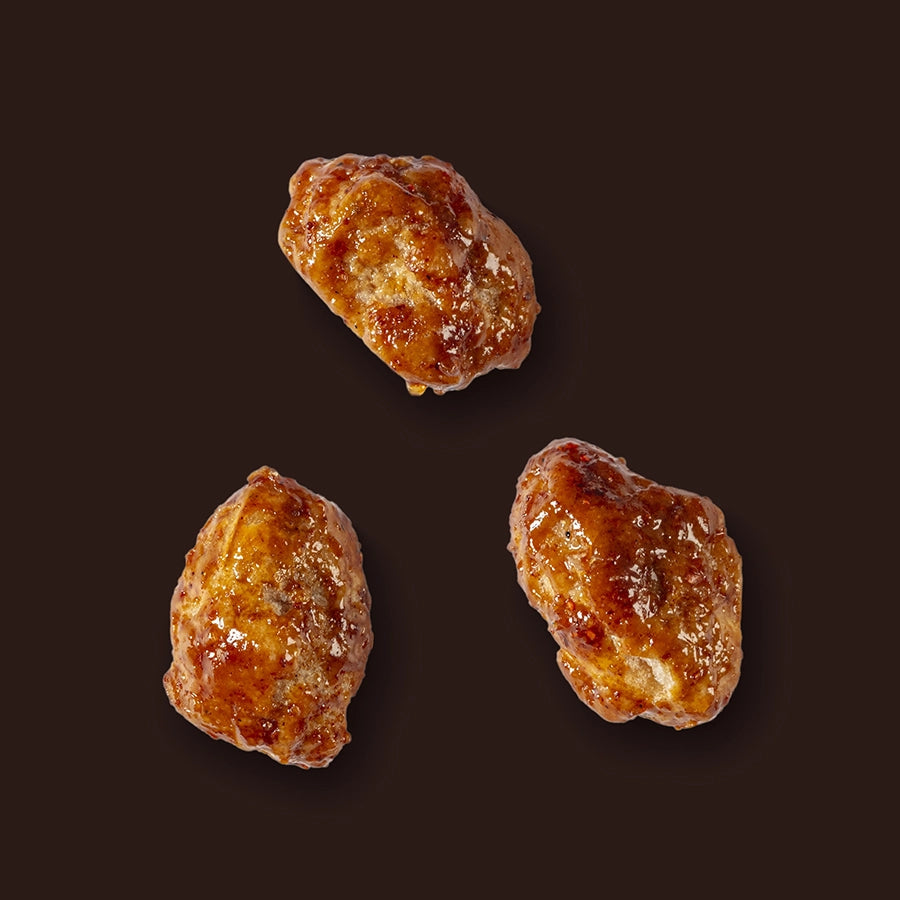 Pralinate lentamente, con cottura dolce e uniforme, per ottenere una crosta sottile e caramellata che esalta il gusto naturale dell’arachide. Un equilibrio perfetto tra croccantezza e aroma.