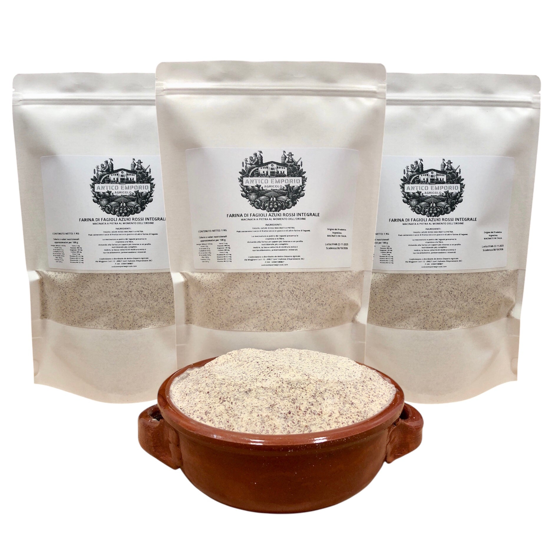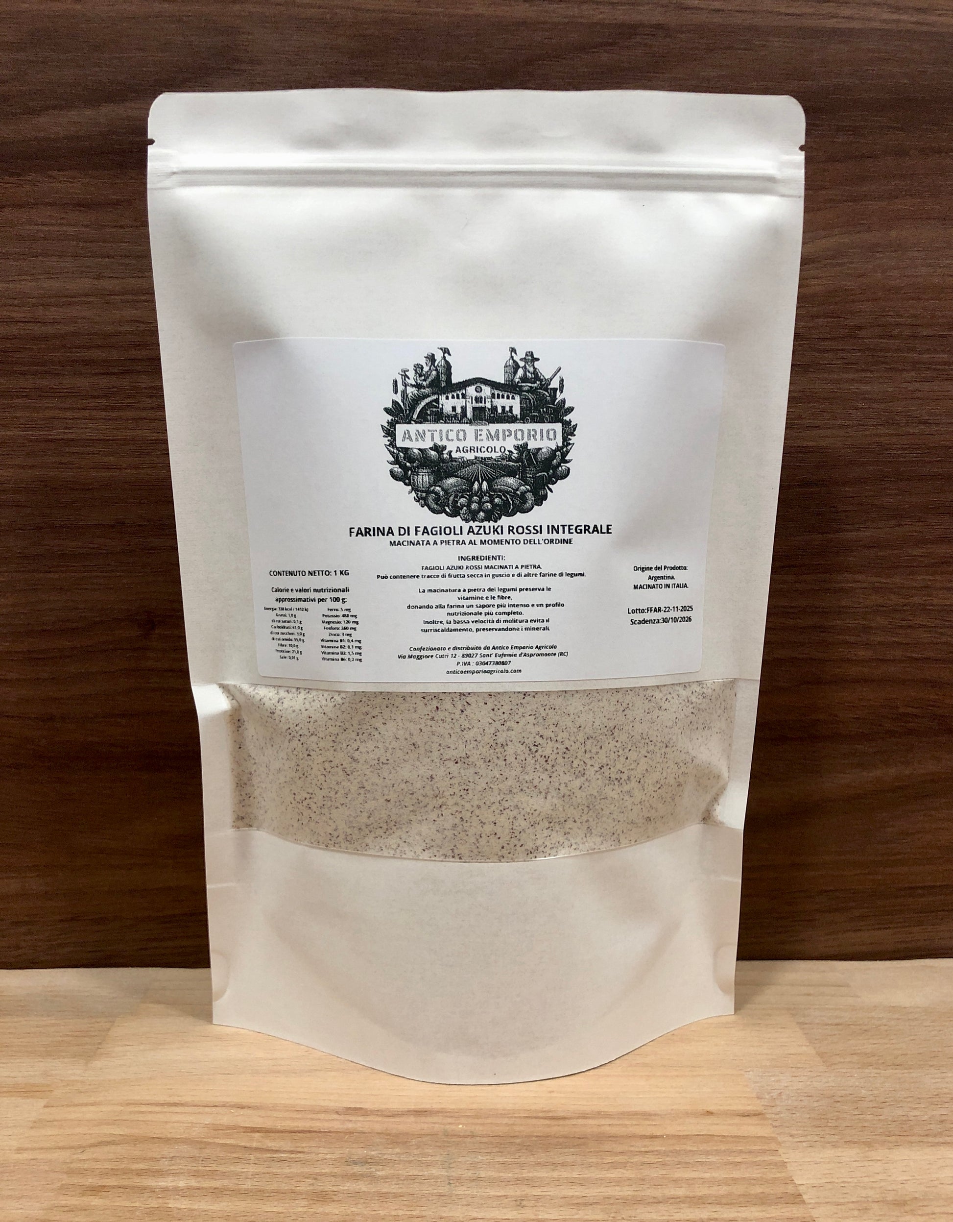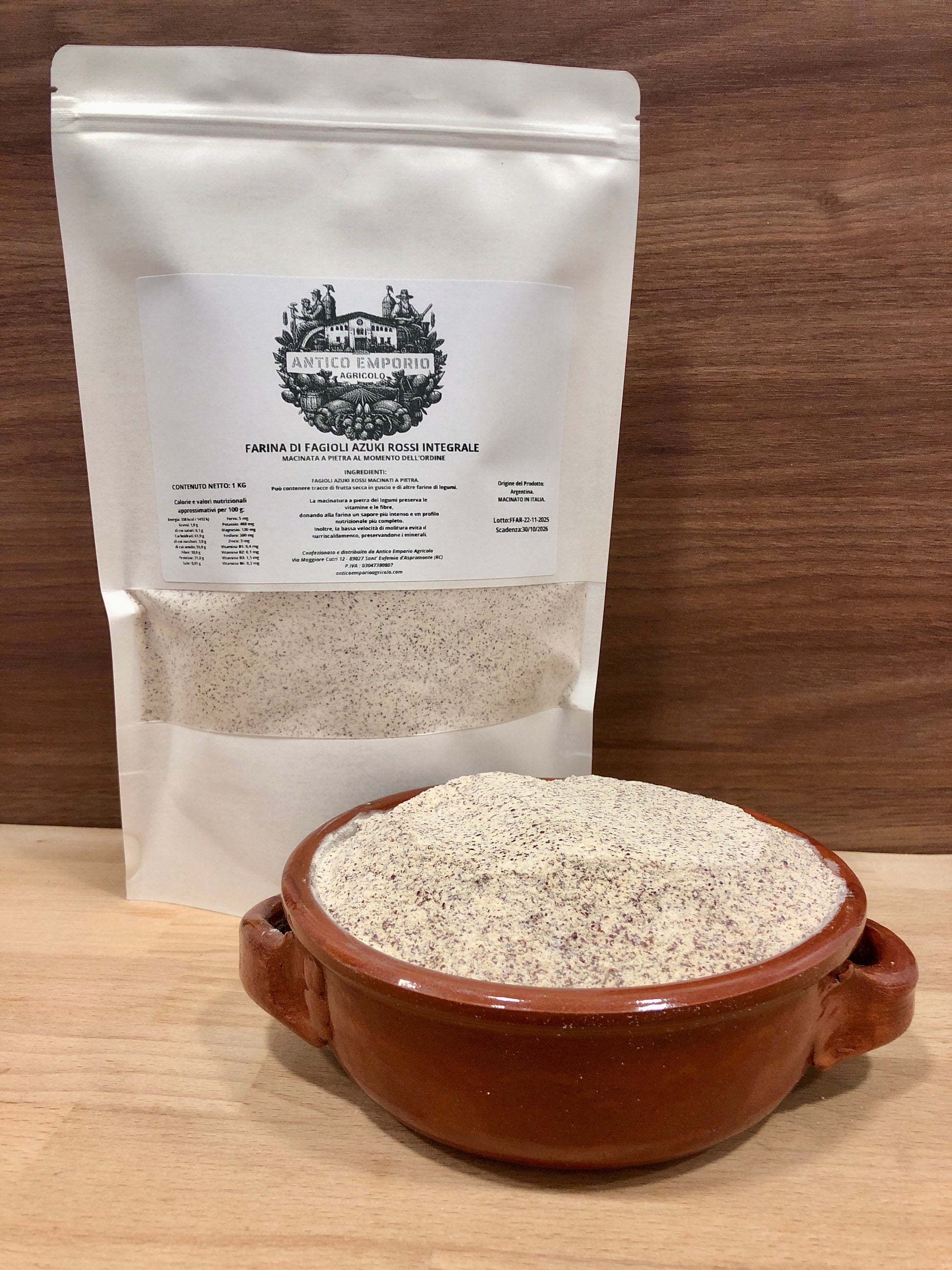 INGREDIENTI: 100% Farina di Fagioli Azuki Rossi Integrale, Macinata a Pietra.