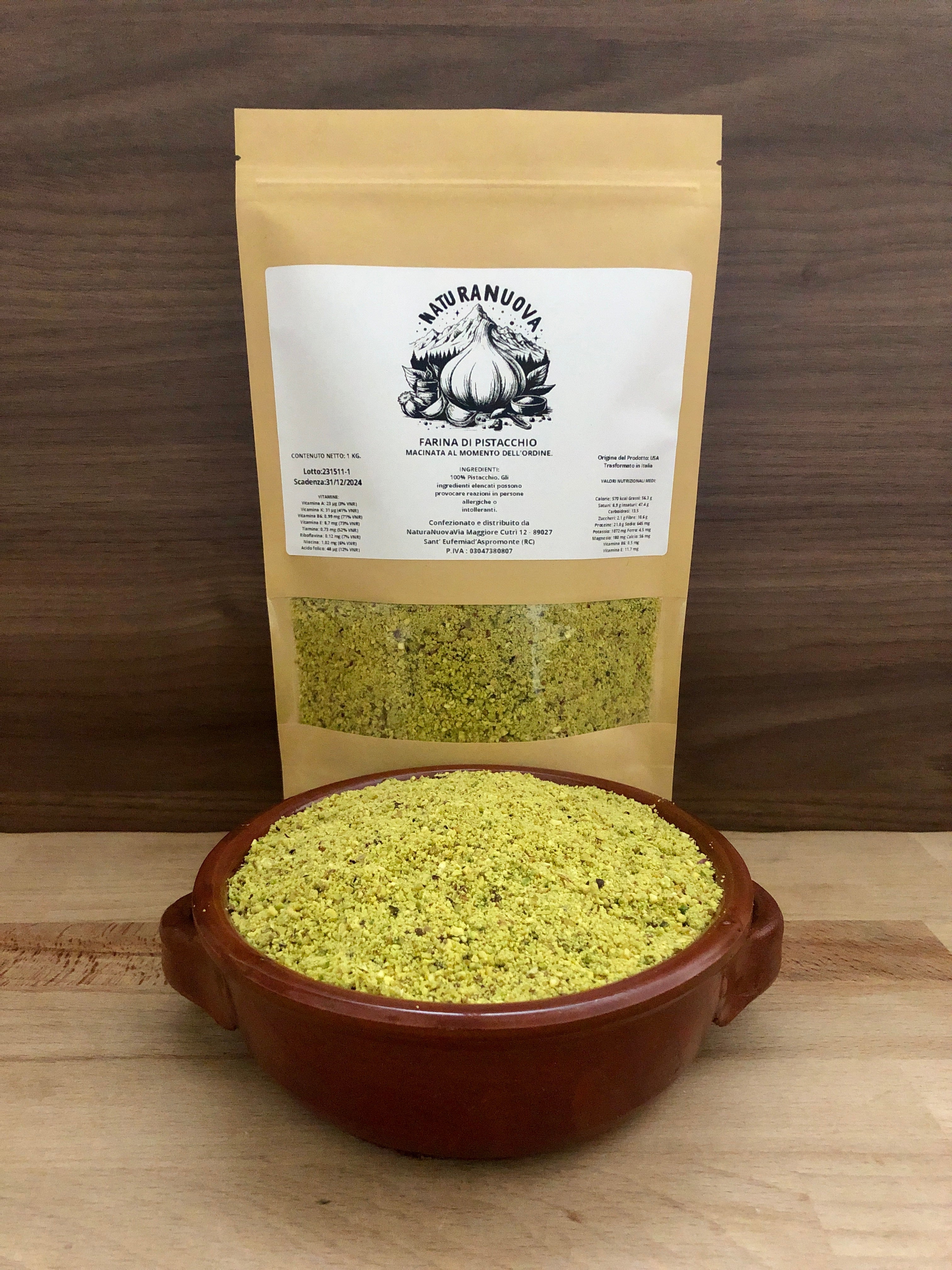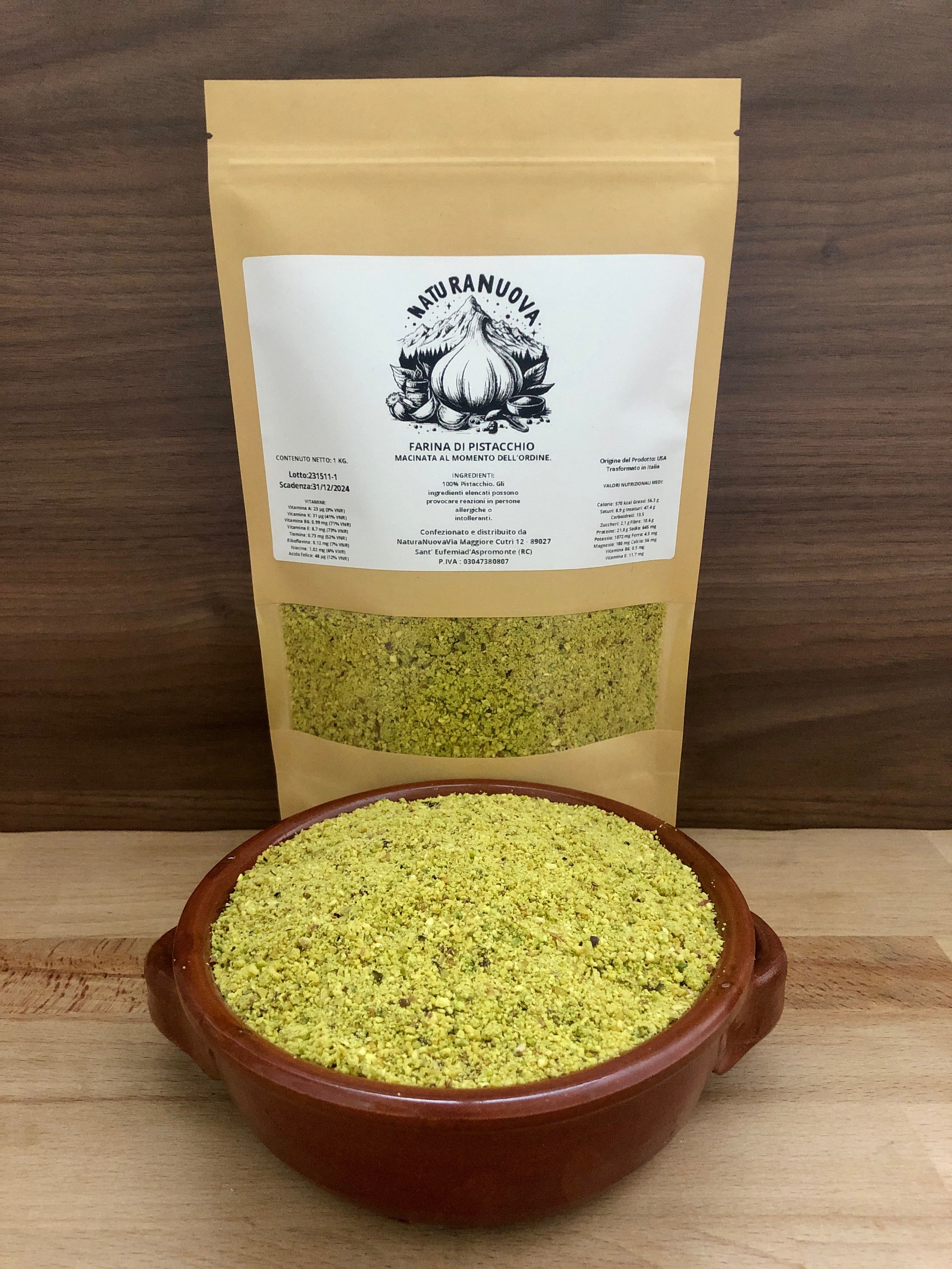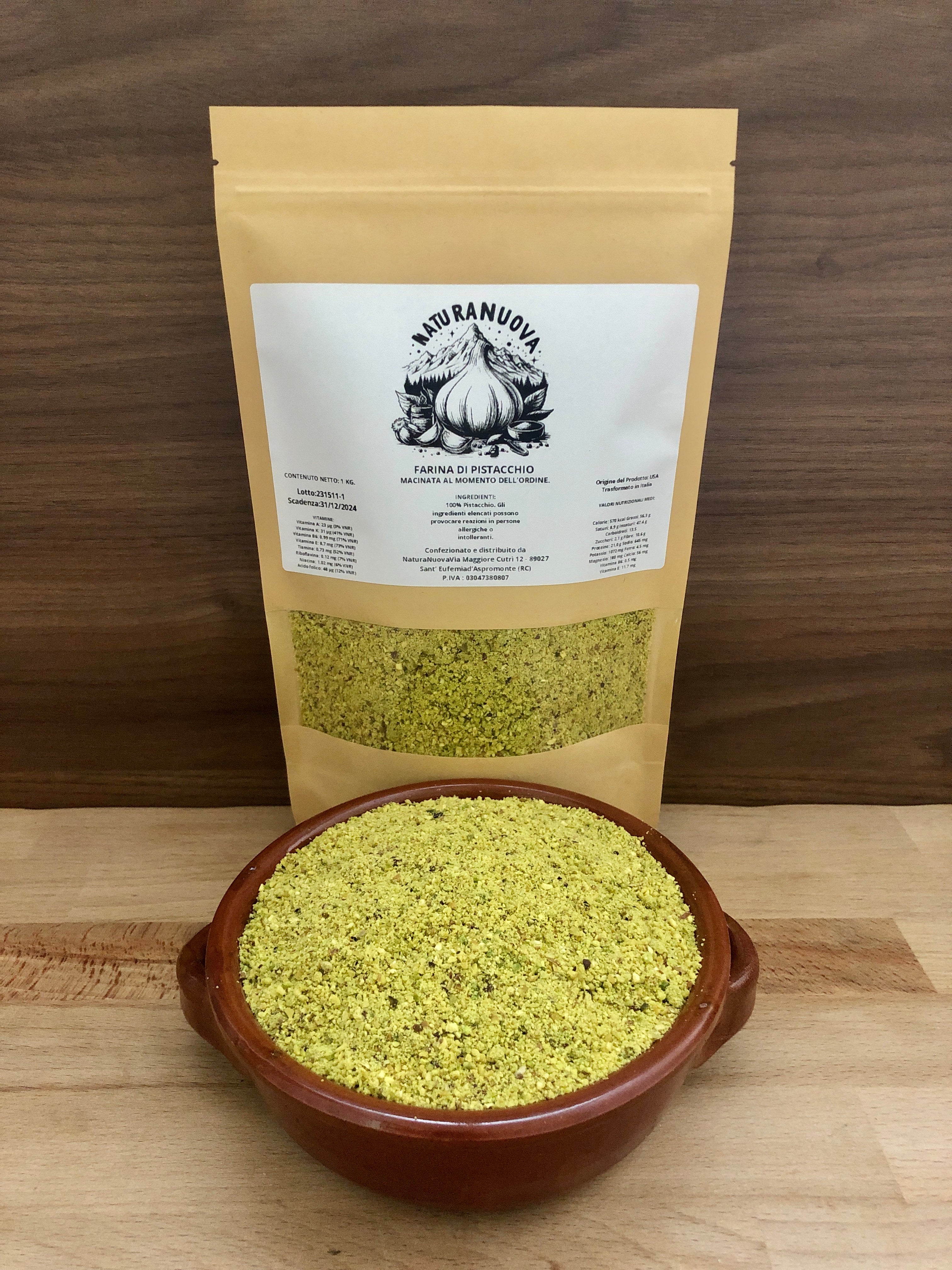 INGREDIENTI: 100% Farina di Pistacchi. Può contenere tracce di altra frutta secca in guscio.