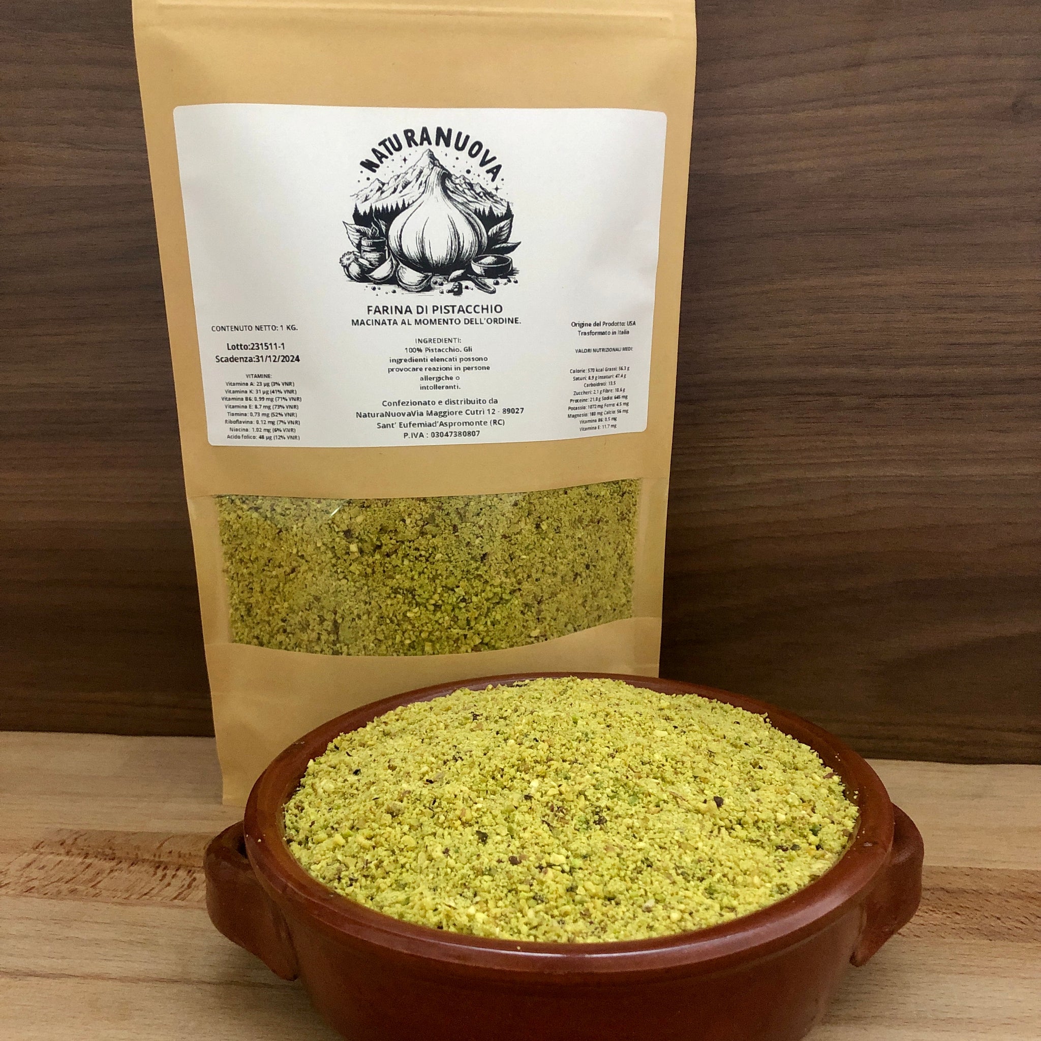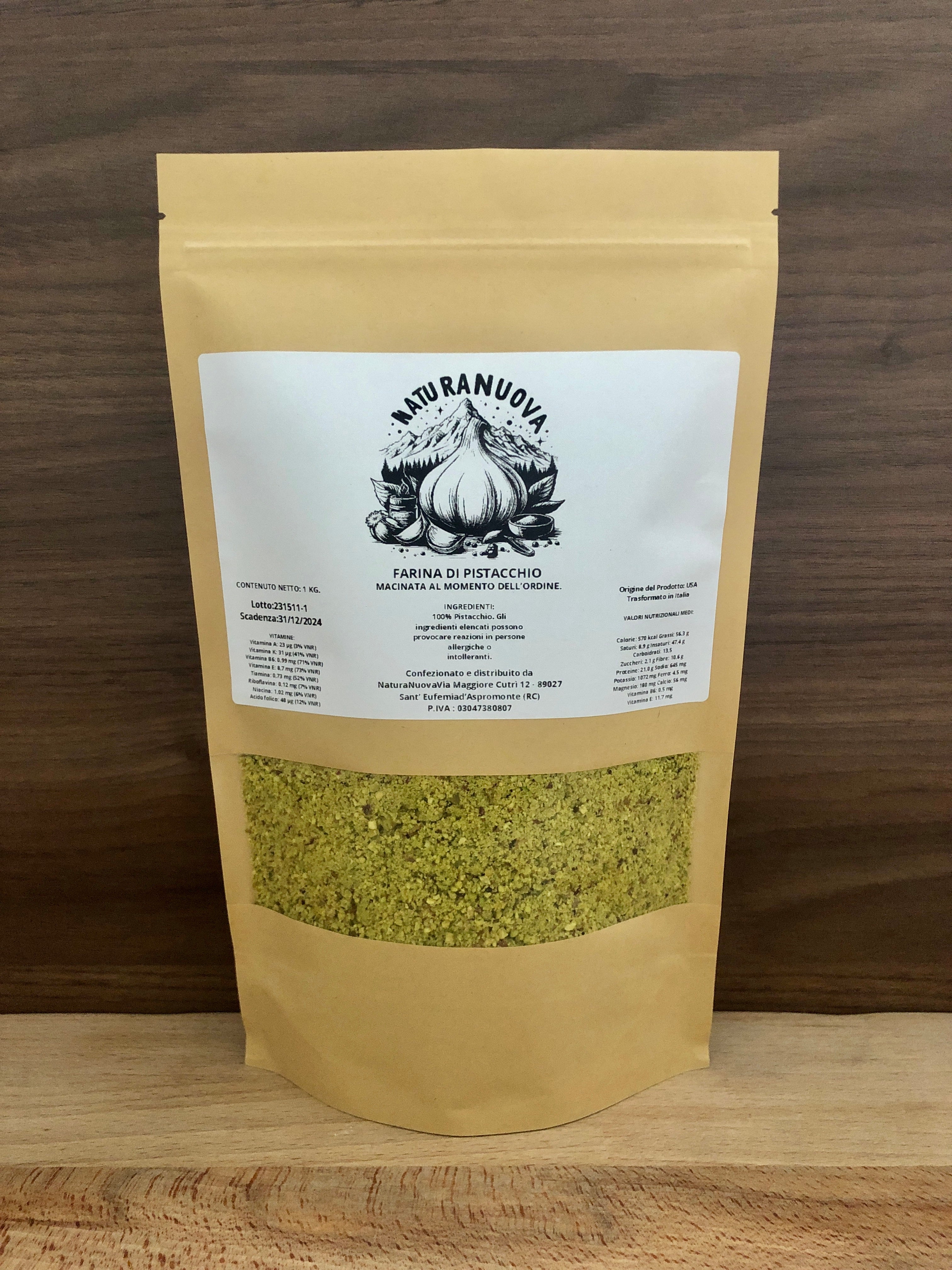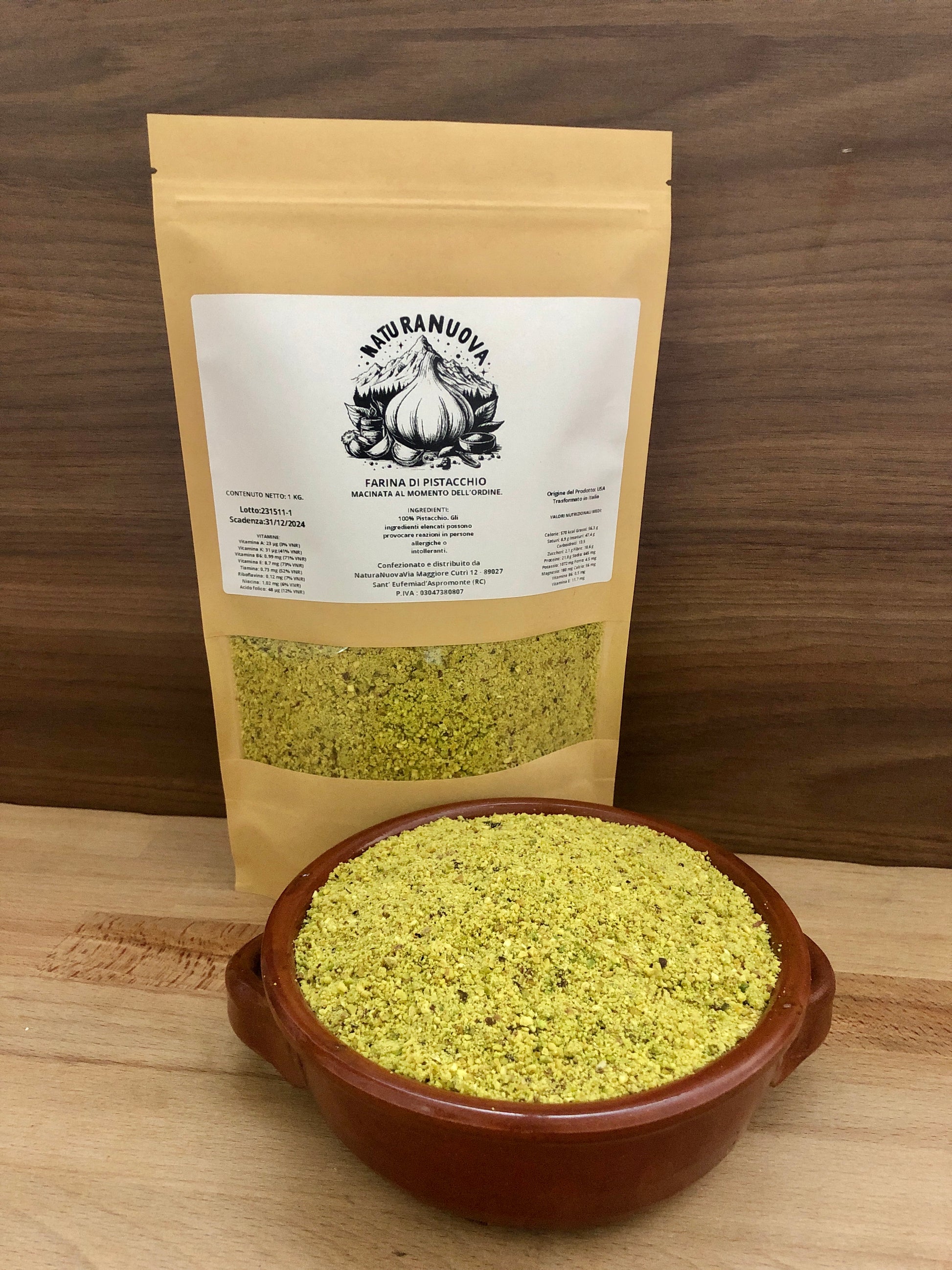 INGREDIENTI: 100% Farina di Pistacchi. Può contenere tracce di altra frutta secca in guscio.