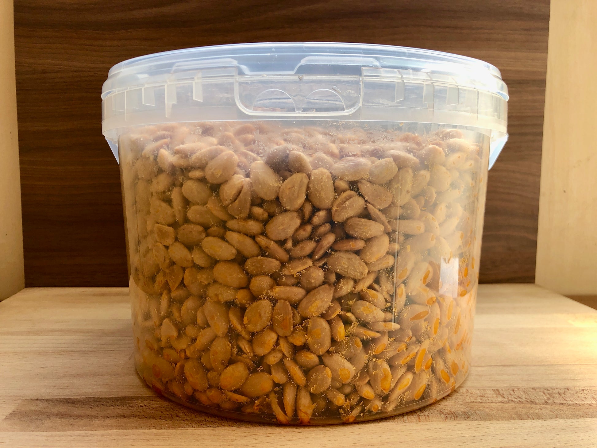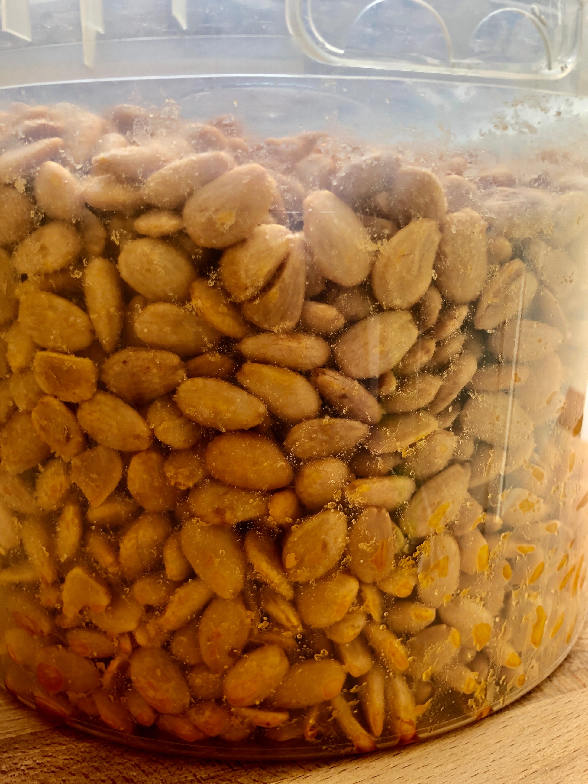 Mandorle dorate al punto giusto in olio di semi di girasole, per un gusto intenso e una croccantezza che dura a lungo.