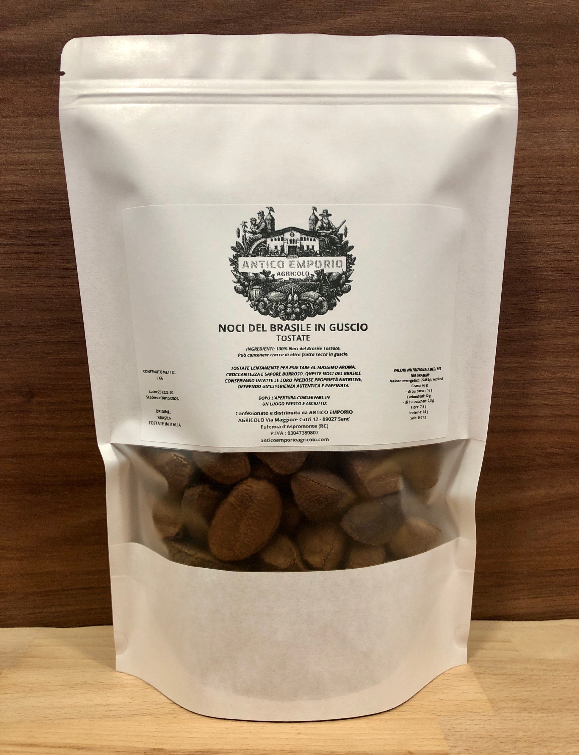 🎁 CONFEZIONAMENTO ECOLOGICO : Le nostre Noci del Brasile sono confezionate in una pratica busta kraft richiudibile, che conserva la freschezza e protegge il prodotto da agenti esterni, mentre il design naturale e raffinato riflette il legame con la natura.