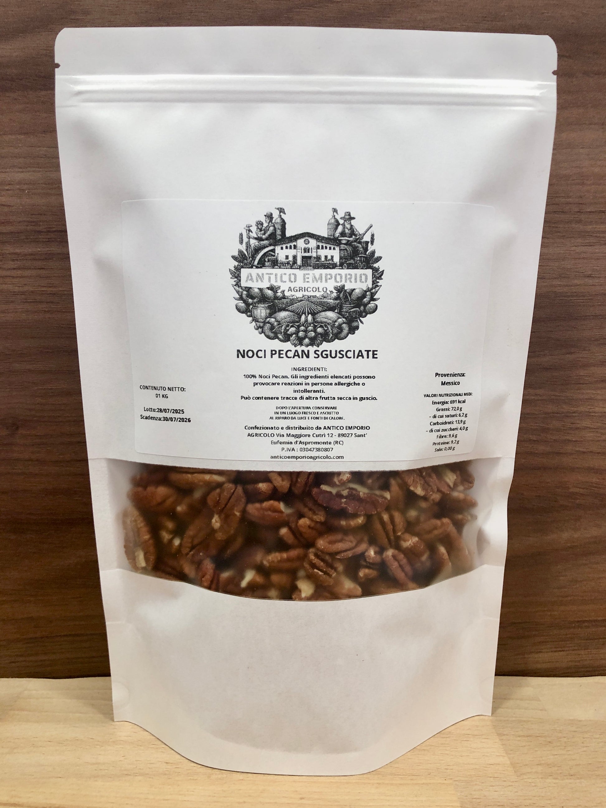 Disponibili in busta richiudibile salva-freschezza da 1 kg: pratica, resistente e perfetta per conservare tutto l’aroma originale delle pecan.